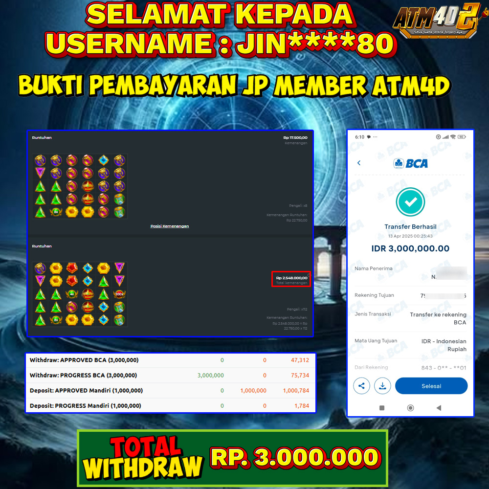 Satu lagi Bukti JP dan Pembarayan Sah Dan Dapat Dipertanggung Jawabkan, WD Berapapun Pasti Dibayar Lunas Hanya di Situs ATM4D2. Hati Hati Kepada Pihak Pihak Yang Mengatas namakan Pihak ATM4D2 Untuk Melakukan Penipuan.