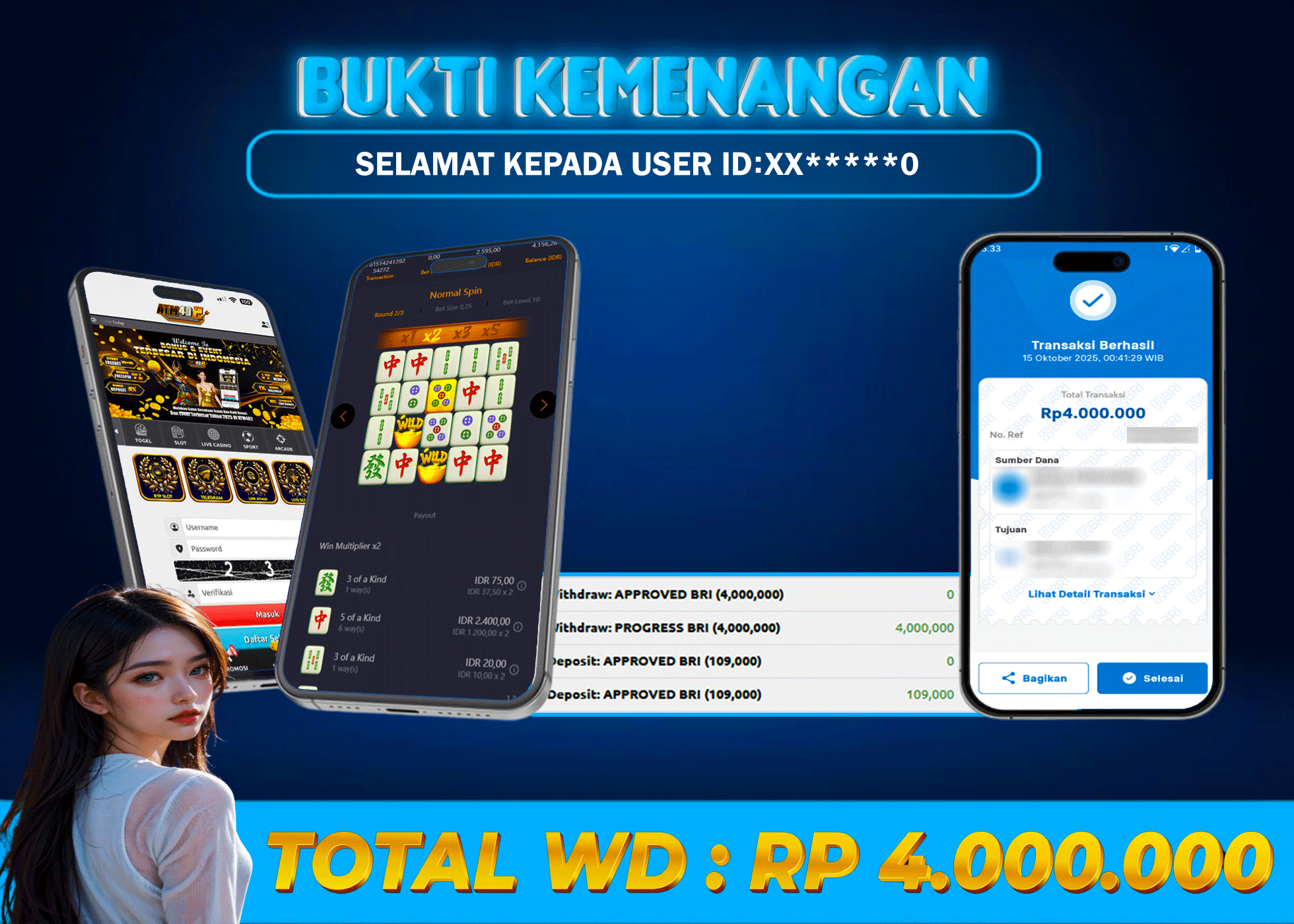 ATM4D2 dikenal sebagai situs terpercaya yang selalu menghadirkan pengalaman bermain slot online yang aman, fair, dan berlisensi resmi. Di sini, kami tidak hanya sekadar memberikan janji, tapi bukti nyata berupa slip kemenangan yang dapat Anda lihat secara langsung.