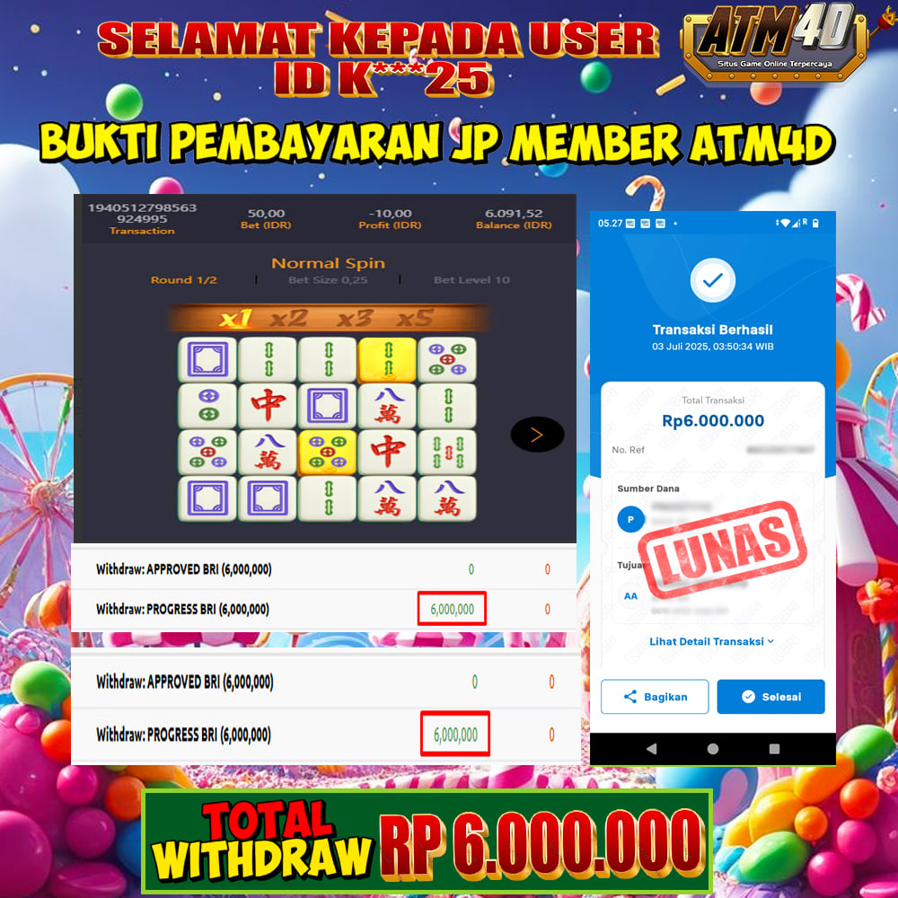 Satu lagi Bukti JP dan Pembarayan Sah Dan Dapat Dipertanggung Jawabkan, WD Berapapun Pasti Dibayar Lunas Hanya di Situs ATM4D. Hati Hati Kepada Pihak Pihak Yang Mengatas namakan Pihak ATM4D Untuk Melakukan Penipuan.