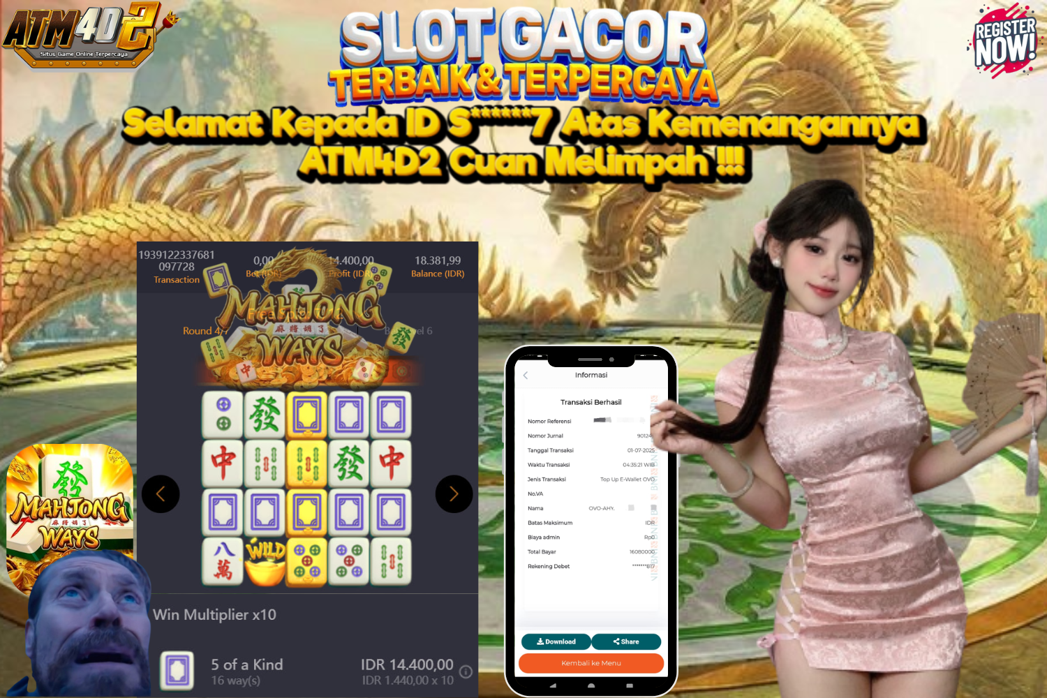 ATM4D2 dikenal sebagai situs terpercaya yang selalu menghadirkan pengalaman bermain slot online yang aman, fair, dan berlisensi resmi. Di sini, kami tidak hanya sekadar memberikan janji, tapi bukti nyata berupa slip kemenangan yang dapat Anda lihat secara langsung.