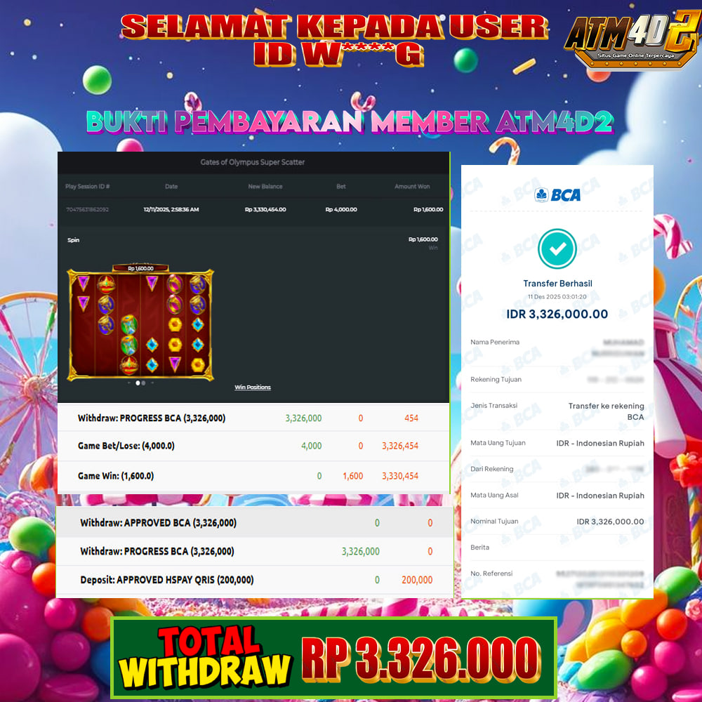 ATM4D2 dikenal sebagai situs terpercaya yang selalu menghadirkan pengalaman bermain slot online yang aman, fair, dan berlisensi resmi. Di sini, kami tidak hanya sekadar memberikan janji, tapi bukti nyata berupa slip kemenangan yang dapat Anda lihat secara langsung.