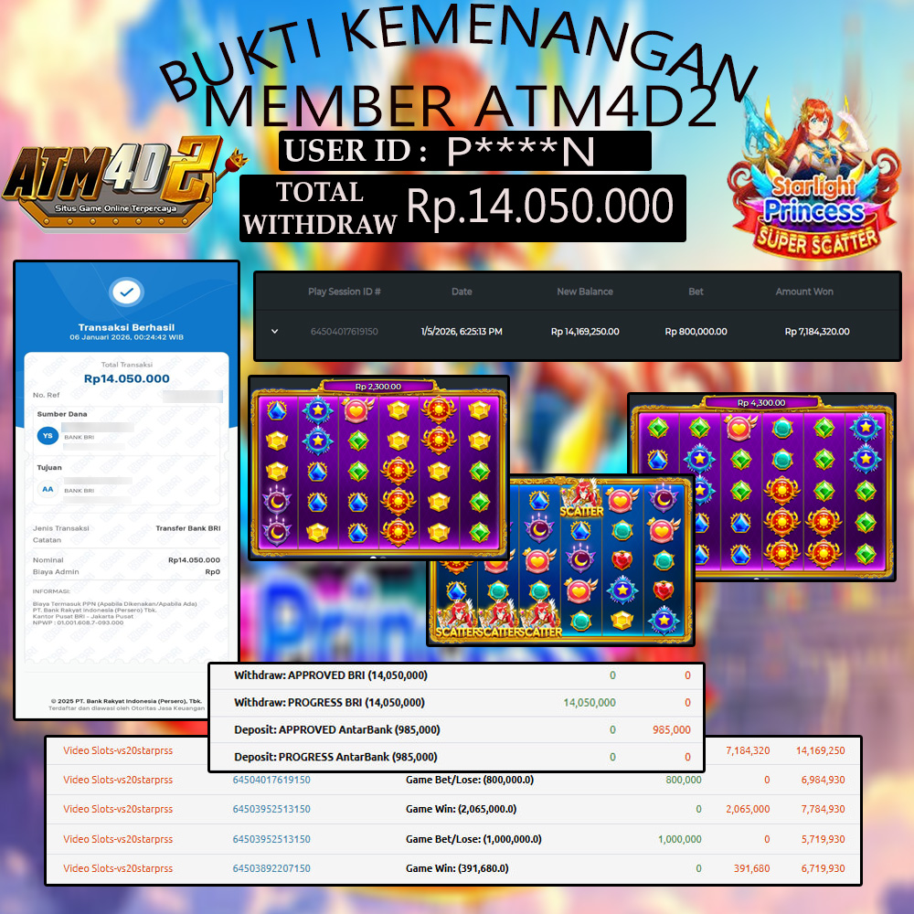 ATM4D2 dikenal sebagai situs terpercaya yang selalu menghadirkan pengalaman bermain slot online yang aman, fair, dan berlisensi resmi. Di sini, kami tidak hanya sekadar memberikan janji, tapi bukti nyata berupa slip kemenangan yang dapat Anda lihat secara langsung.