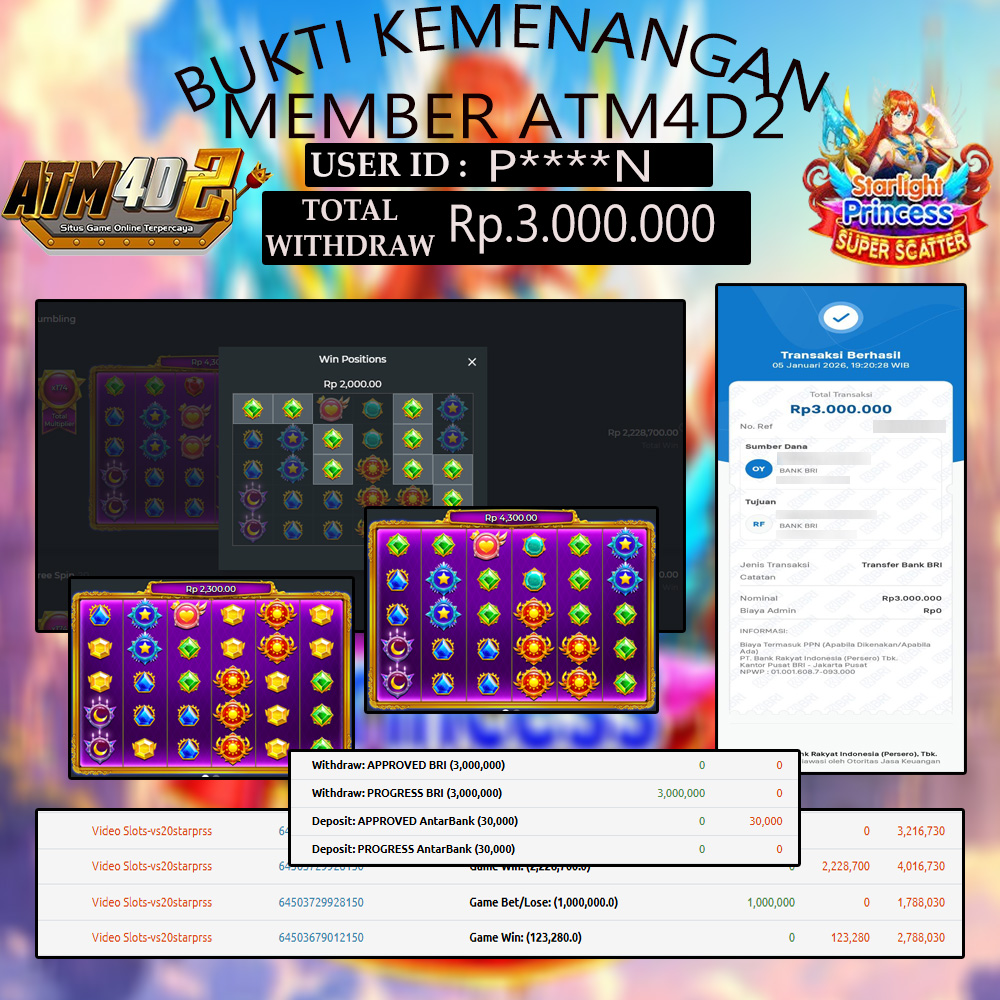 ATM4D2 dikenal sebagai situs terpercaya yang selalu menghadirkan pengalaman bermain slot online yang aman, fair, dan berlisensi resmi. Di sini, kami tidak hanya sekadar memberikan janji, tapi bukti nyata berupa slip kemenangan yang dapat Anda lihat secara langsung.