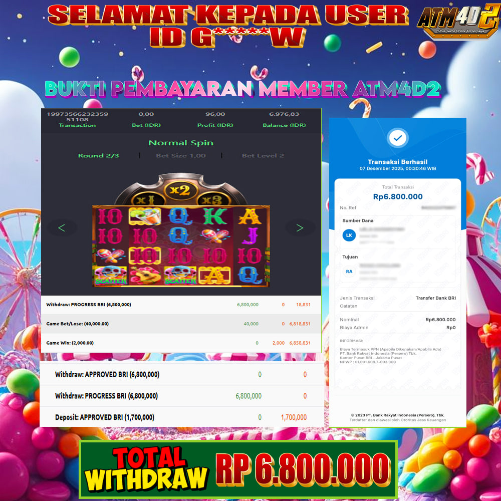 ATM4D2 dikenal sebagai situs terpercaya yang selalu menghadirkan pengalaman bermain slot online yang aman, fair, dan berlisensi resmi. Di sini, kami tidak hanya sekadar memberikan janji, tapi bukti nyata berupa slip kemenangan yang dapat Anda lihat secara langsung.