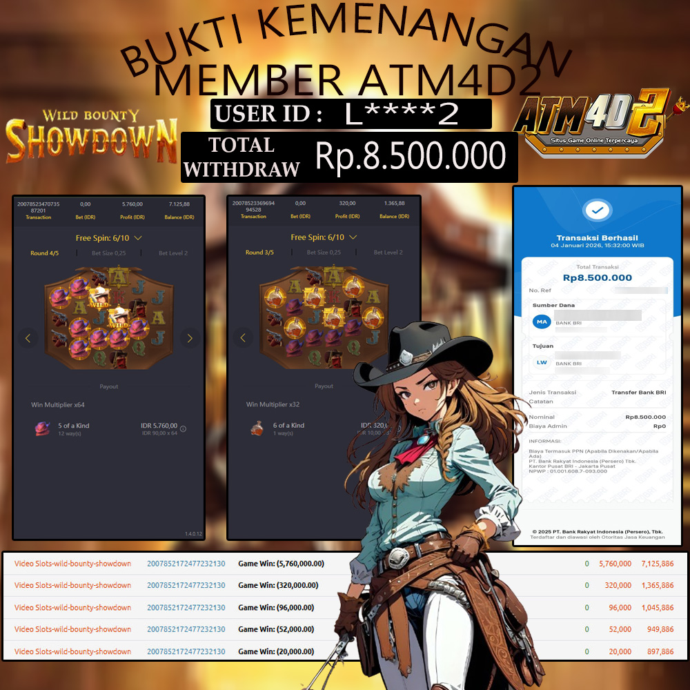 ATM4D2 dikenal sebagai situs terpercaya yang selalu menghadirkan pengalaman bermain slot online yang aman, fair, dan berlisensi resmi. Di sini, kami tidak hanya sekadar memberikan janji, tapi bukti nyata berupa slip kemenangan yang dapat Anda lihat secara langsung.
